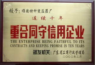 連續(xù)10年重合同守信用