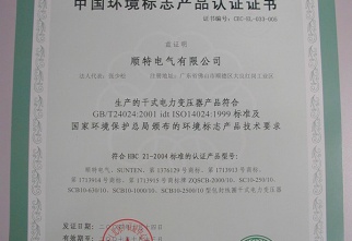 中國環(huán)境標(biāo)志產(chǎn)品認(rèn)證證書