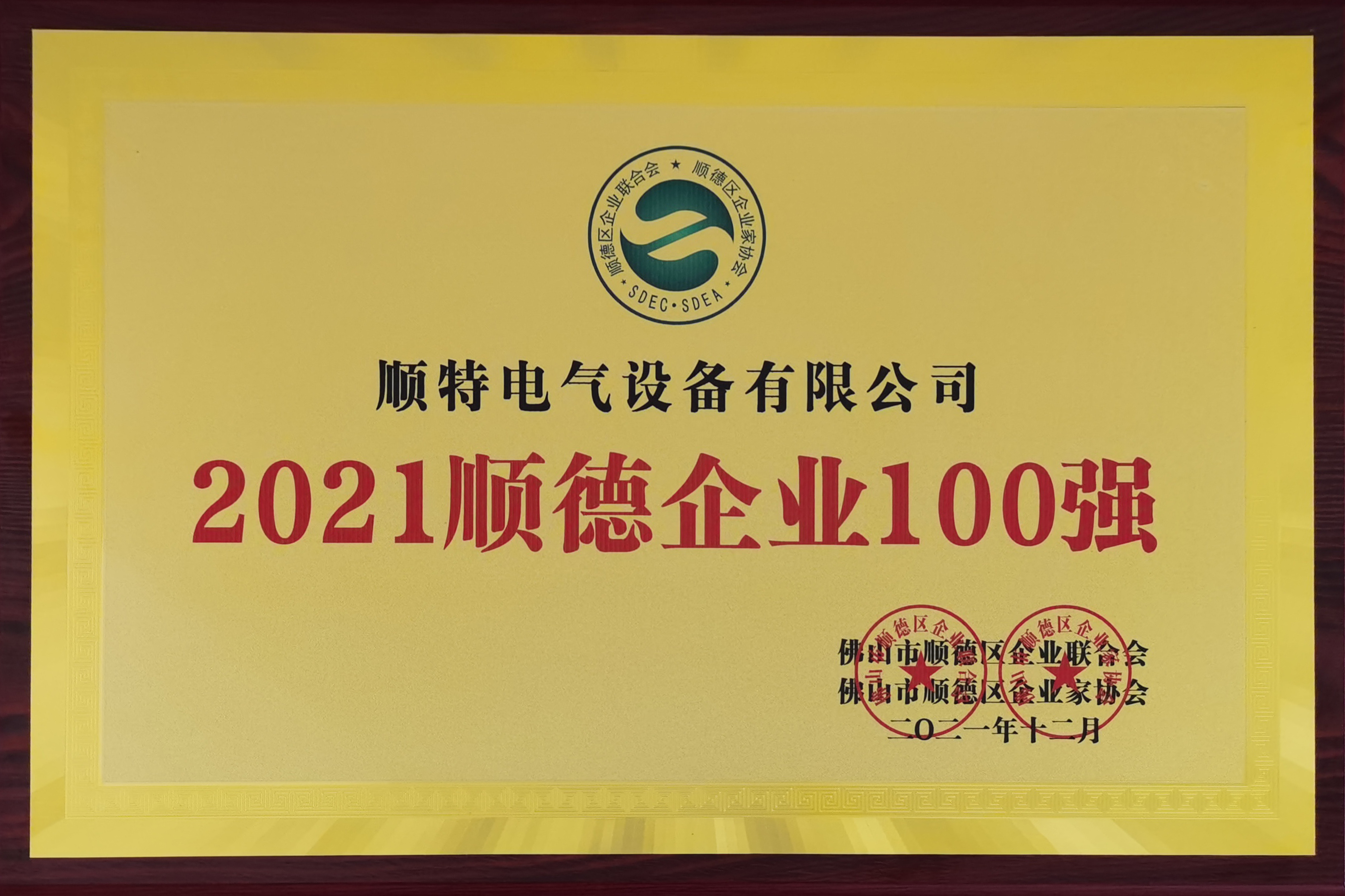 日前,佛山市順德區(qū)企業(yè)聯(lián)合會、佛山市順德區(qū)企業(yè)家協(xié)會發(fā)布了“2021順德企業(yè)100強榜單”,作為輸配電行業(yè)知名企業(yè),順特電氣榮登榜單。4月27日,易吉良總工程師代表公司,鄭重接收了“順德企業(yè)100百強”榮譽牌匾和證書。
