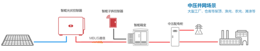 并網(wǎng)光伏發(fā)電系統(tǒng)是指太陽能電池利用太陽輻射能量產(chǎn)生的直流電(即太陽電池的“光生伏特效應”)通過并網(wǎng)光伏逆變器轉換成交流電向電網(wǎng)輸送的系統(tǒng),其本質是利用太陽能進行發(fā)電的發(fā)電站。與煤、石油和天然氣等傳統(tǒng)能源進行發(fā)電的發(fā)電站系統(tǒng)相比,并網(wǎng)光伏發(fā)電系統(tǒng)具有可再生、無污染等優(yōu)點。該光伏項目采用10kV等級高壓并網(wǎng)方式,光伏系統(tǒng)包含一套順特電氣自主制造的10kV等級4000kVA預裝式光伏升壓站、7160塊光伏組件、13組300kW大功率智能組串式光伏逆變器、一套10kV智能并網(wǎng)開關柜等組成,光伏組件通過光生伏特效應產(chǎn)生電流,然后通過組串式逆變器進行逆變,將直流電轉換為交流電,最后就地升壓至10kV接入電網(wǎng)。