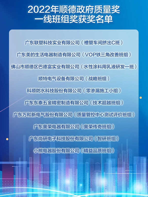 獲得“2022年順德政府質(zhì)量獎一線班組獎”,是政府對順特電氣在創(chuàng)建先進質(zhì)量管理模式、推行先進質(zhì)量理念、踐行科學質(zhì)量管理方法等方面的高度肯定。接下來,我司將繼續(xù)學習借鑒先進質(zhì)量管理經(jīng)驗,不斷強化質(zhì)量意識,持續(xù)提升質(zhì)量管理水平,為順德建設(shè)質(zhì)量強區(qū)、建設(shè)高質(zhì)量發(fā)展先行示范區(qū)作出新的貢獻。