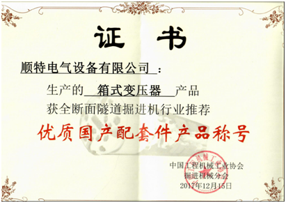 近期,公司在中國工程機(jī)械工業(yè)協(xié)會掘進(jìn)機(jī)械協(xié)會組織評選的優(yōu)質(zhì)產(chǎn)品稱號名單中榜上有名——我公司生產(chǎn)的盾構(gòu)機(jī)專用箱式變壓器產(chǎn)品榮獲全斷面隧道掘進(jìn)機(jī)行業(yè)推薦“優(yōu)質(zhì)國產(chǎn)配套件產(chǎn)品” 稱號。