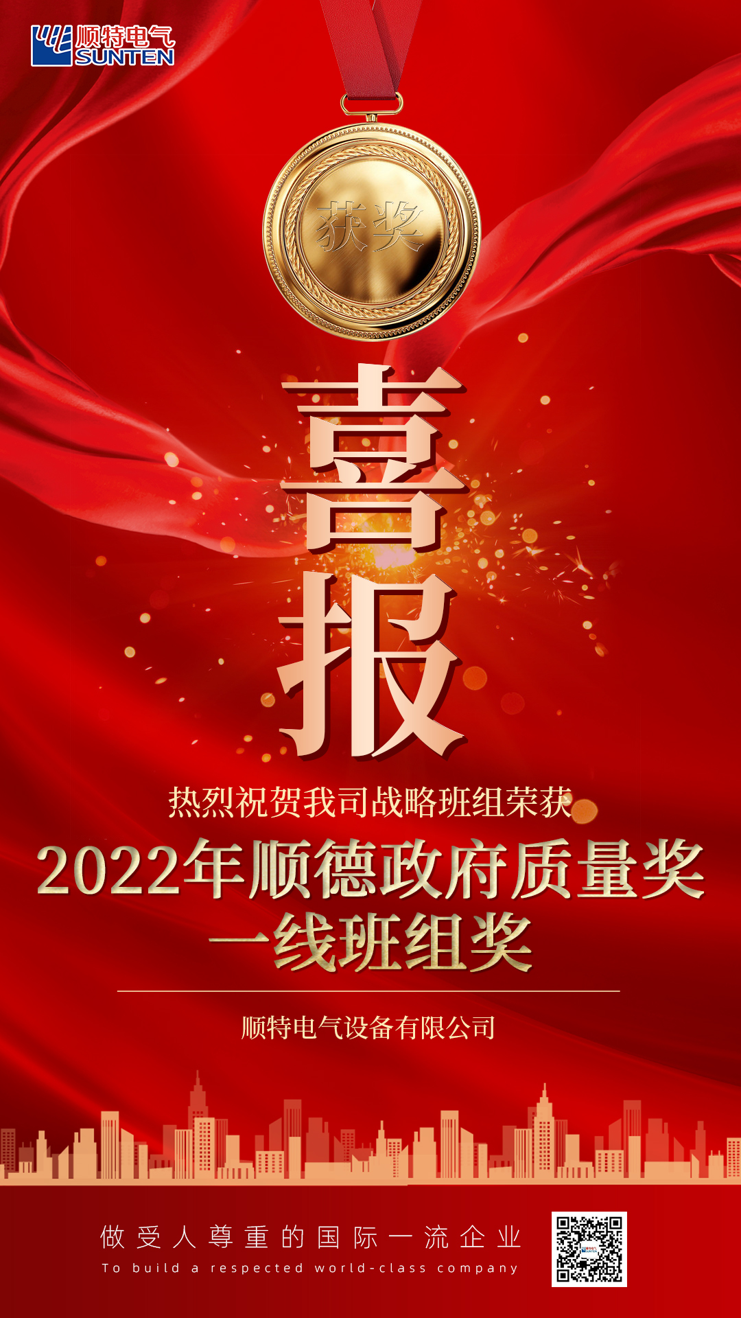 喜報(bào)!我司戰(zhàn)略班組榮獲“2022年順德政府質(zhì)量獎(jiǎng)一線班組獎(jiǎng)”