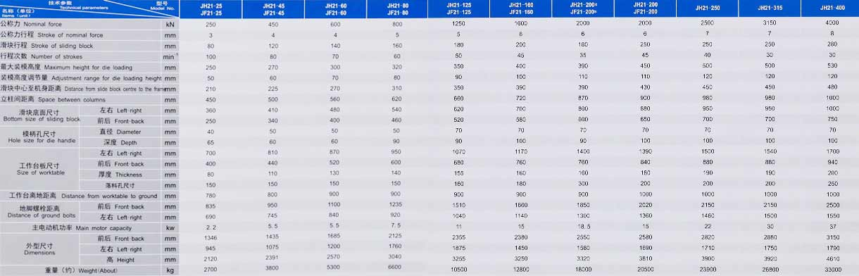 JH21/JF21系列開式固定臺(tái)高性能壓力機(jī)